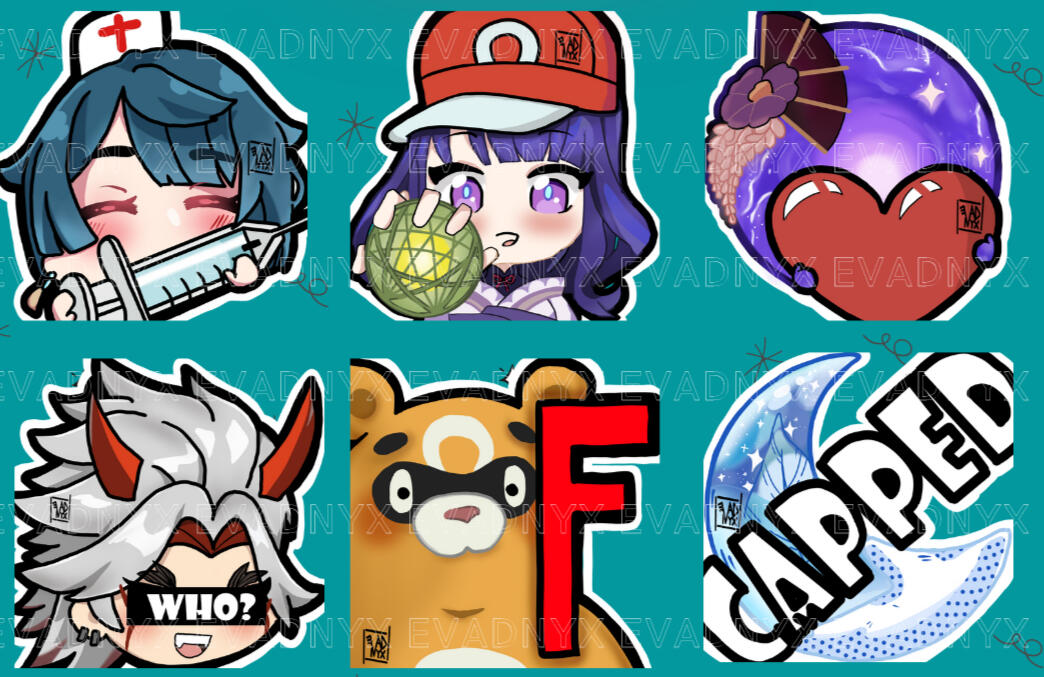 Six (6) custom emotes, badges, or chibi artworks※※※NOTE: These prices are inclusive of PayPal transaction fees