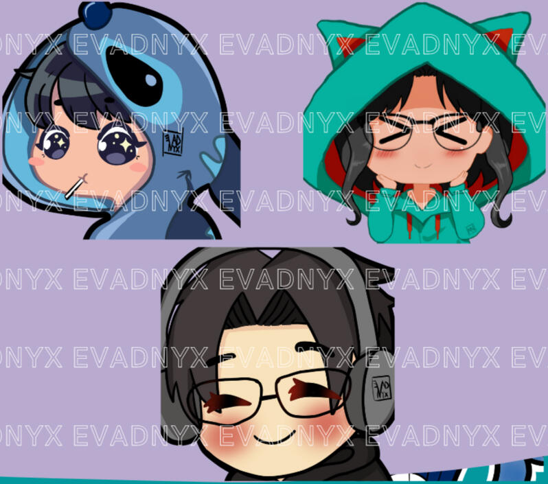 Three (3) custom emotes, badges, or chibi artworks※PREMIUM